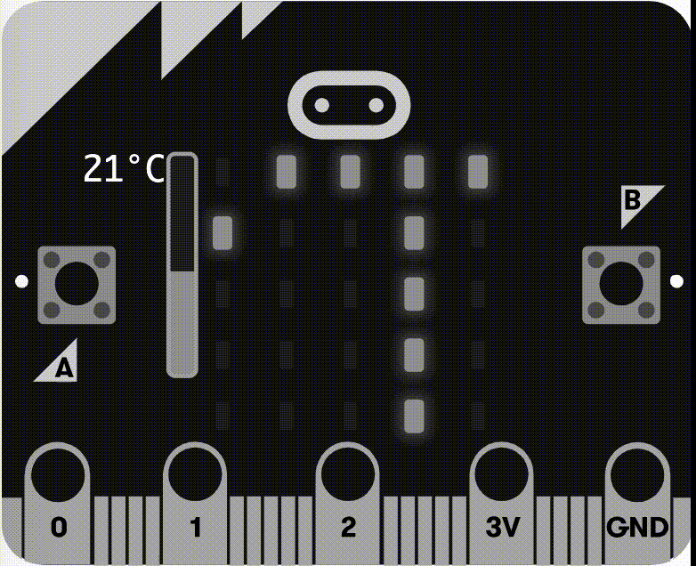 Puoi usare il Pulsante A per cambiare l'unità di misura e visualizzare la temperatura in Fahrenheit (necessita di un po' di matematica: F=C×1.8+32).